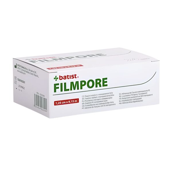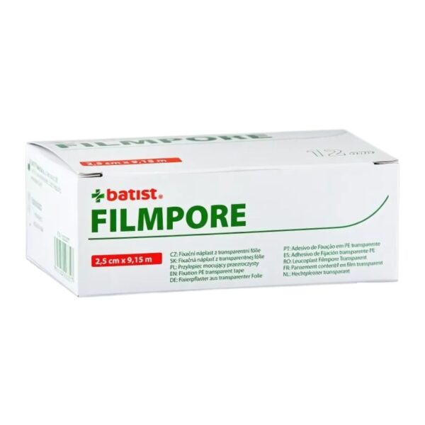 BATIST Medical Filmpore to przezroczysty, mikroporowaty przylepiec mocujący przeznaczony do bezpiecznego mocowania opatrunków i kompresów na skórze wrażliwej. Dzięki mikroporowatej strukturze plaster pozwala skórze oddychać, minimalizując ryzyko podrażnień.