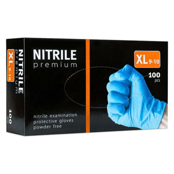 NITRILE PREMIUM, rękawice nitrylowe, diagnostyczne, ochronne, bezpudrowe – 100 szt.