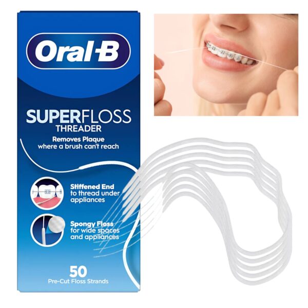 Superfloss THREADER marki Oral-B nowa wersja nitki odcinkowej do zębów, która została z zaprojektowana z myślą o jeszcze dokładniejszym czyszczeniu aparatów ortodontycznych, mostów, a także do oczyszczania przestrzeni między zębami o większych odstępach.