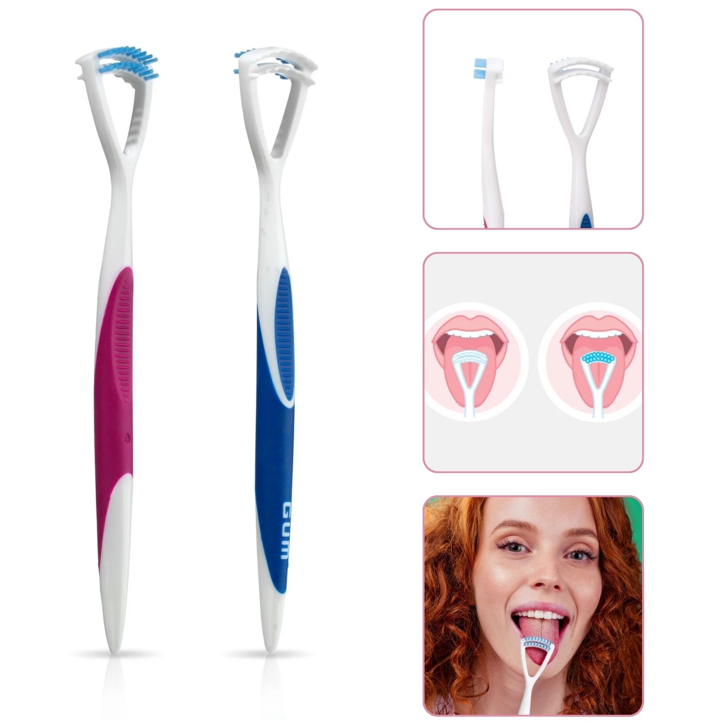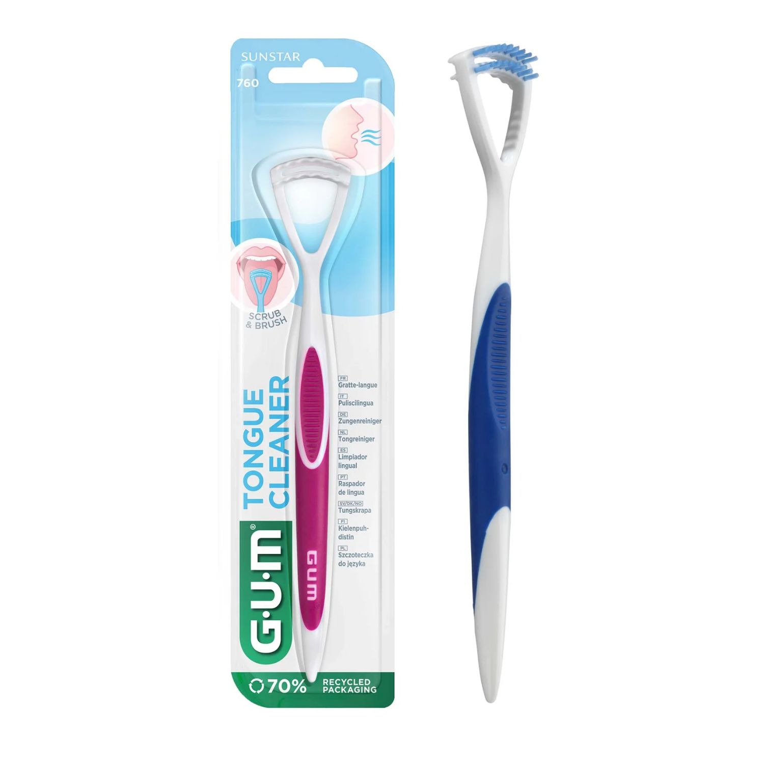 GUM® Tongue Cleaner to innowacyjne narzędzie łączące szczoteczkę i skrobaczkę do języka w jednym, zaprojektowane z myślą o dokładnym usuwaniu bakterii, resztek jedzenia i płytki nazębnej z powierzchni języka. Regularne stosowanie pomaga eliminować nieprzyjemny zapach z ust i wspiera zdrowie jamy ustnej.