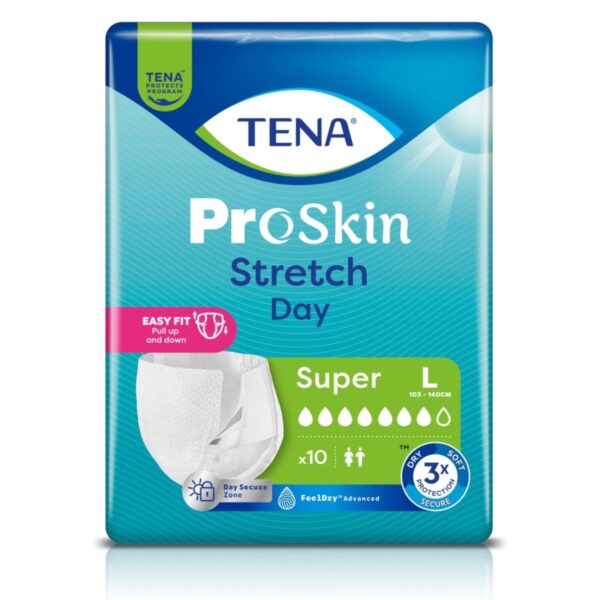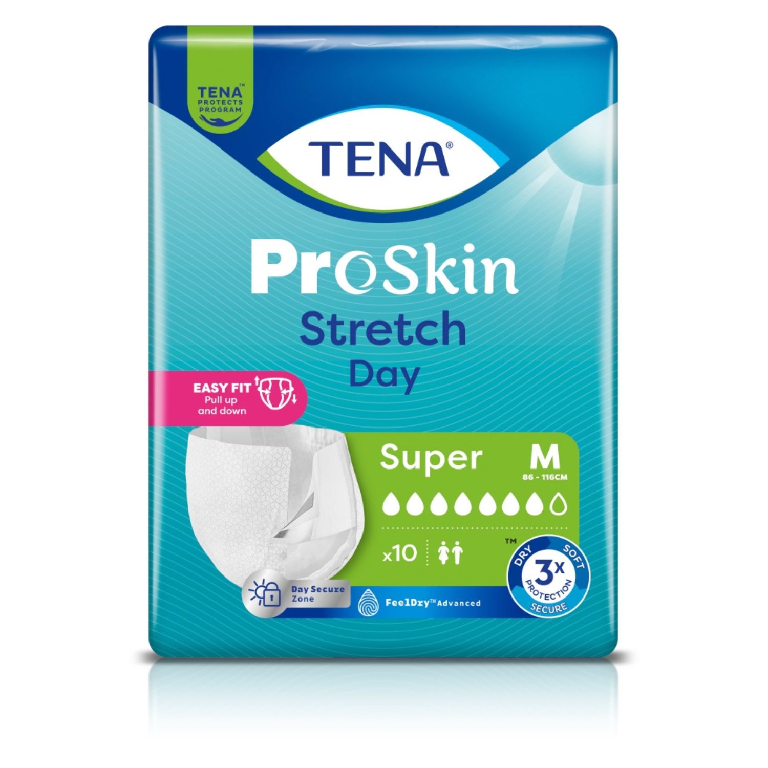 TENA Stretch ProSkin Super Day – elastyczne pieluchomajtki dla kobiet i mężczyzn z nietrzymaniem moczu, komfortowe dopasowanie dzięki szerokim rzepom.