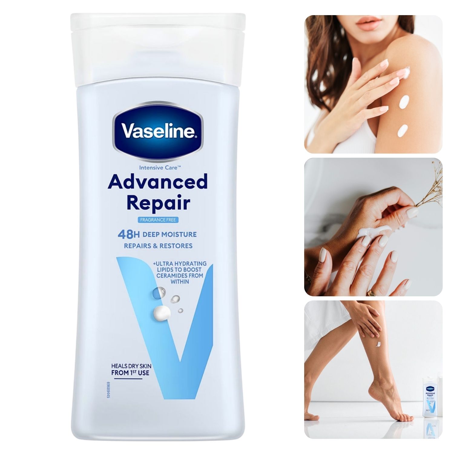 Vaseline Repair Body Lotion to intensywnie regenerujący balsam do ciała, stworzony z myślą o skórze suchej i bardzo suchej. Formuła wzbogacona o mikrocząsteczki wazeliny oraz lipidy nawilżające wnika głęboko w skórę, odbudowując jej naturalną barierę ochronną i zapewniając długotrwałe nawilżenie aż do 48 godzin. Produkt jest bezzapachowy, co czyni go idealnym dla skóry wrażliwej.